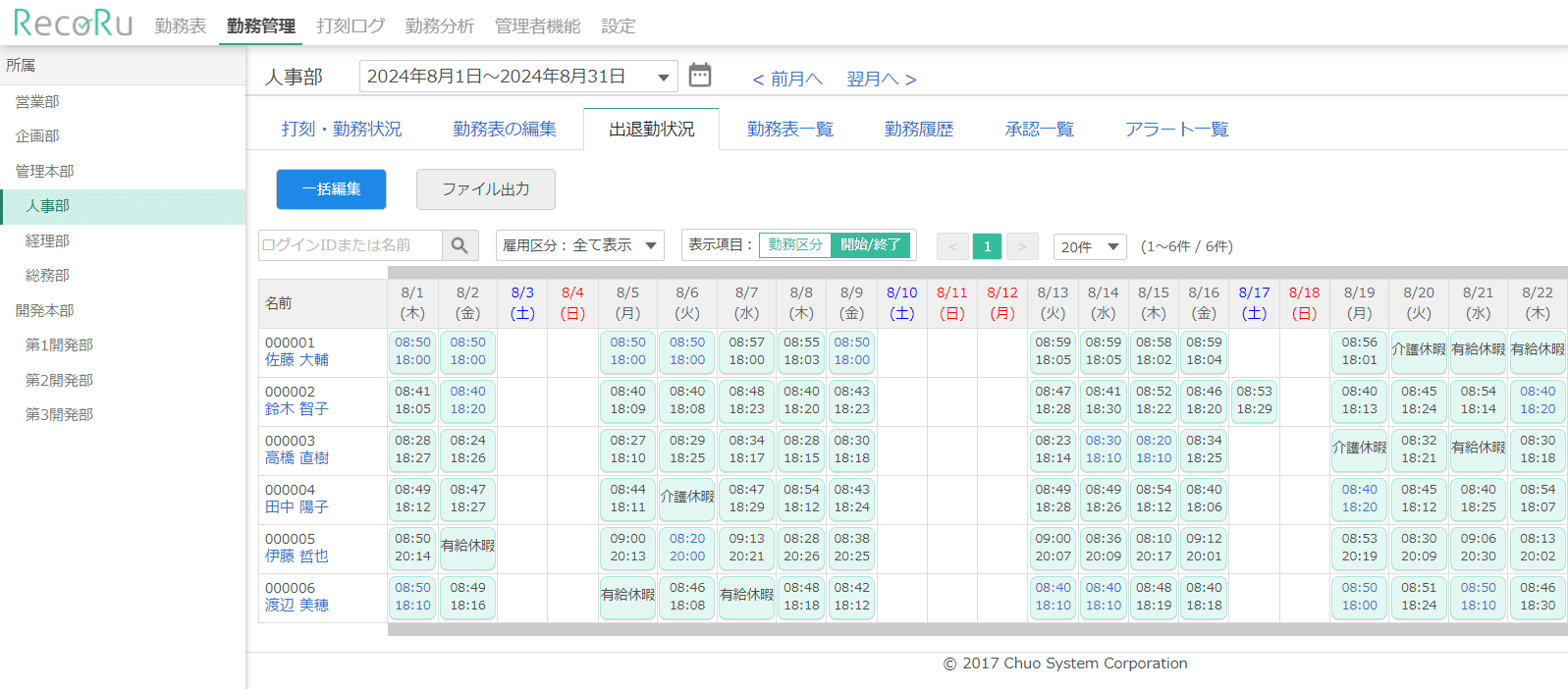 また、拠点ごとの管理も可能であり、離れた拠点の状況も本社などから容易に管理することができます。
