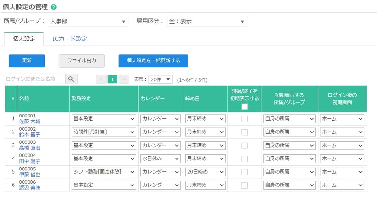 従業員ごとに集計方法を設定できるため、複数の勤務形態がある場合でも管理が可能です。