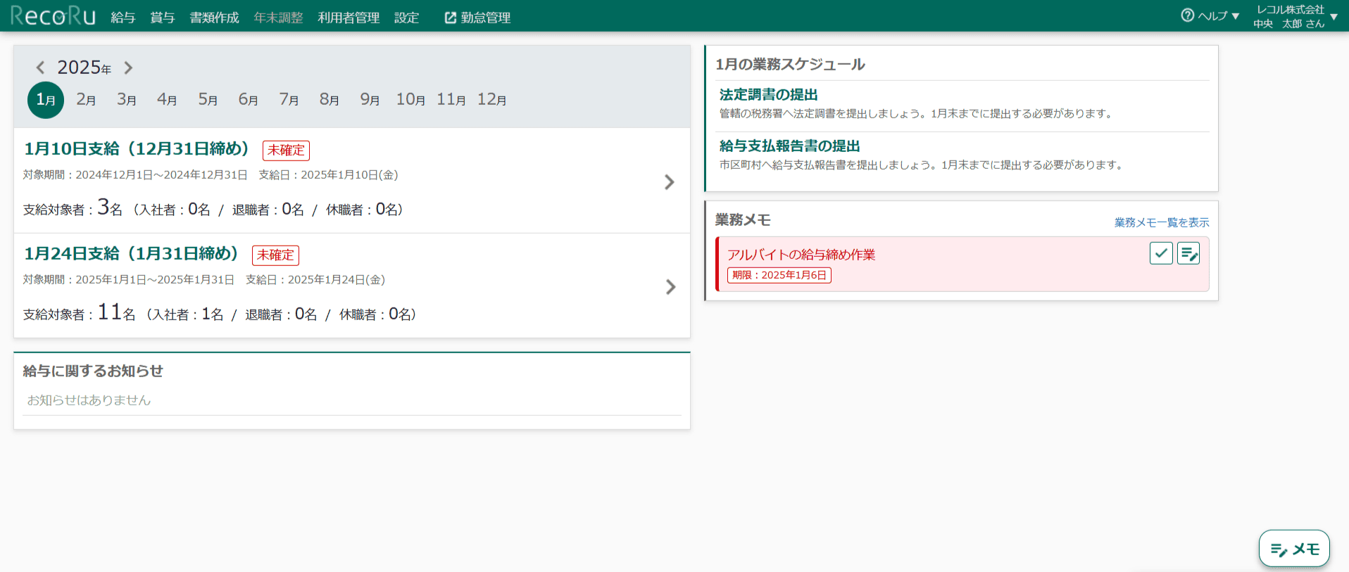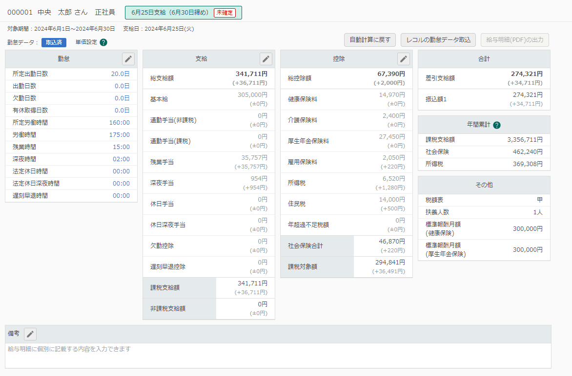 登録した内容は給与計算画面のダッシュボードで表示、確認することができます。