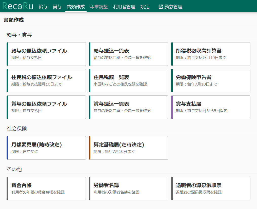 給与・賞与の情報から確認用書類や提出が必要な帳票を出力することができます。