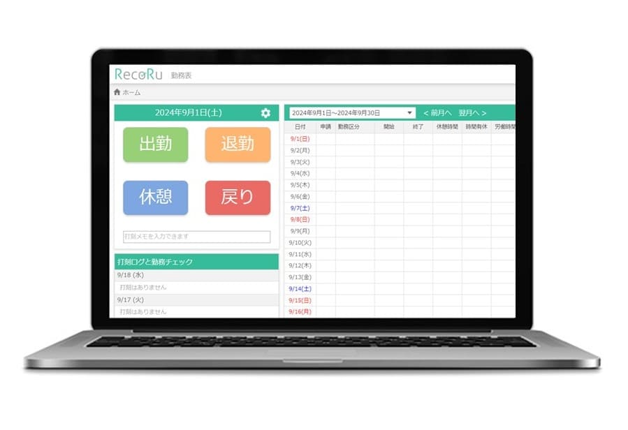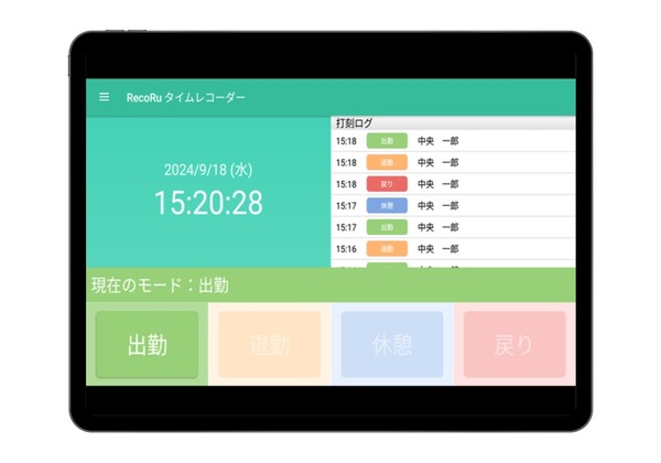 - 打刻モードは出勤、退勤、休憩、戻りの4つのモードから選べます