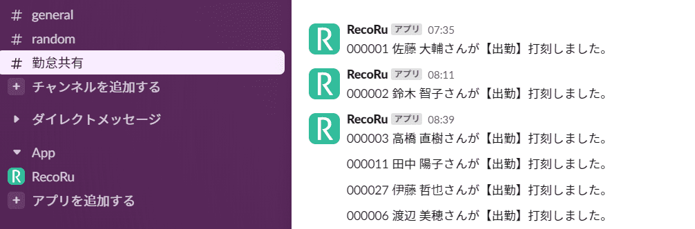 - Slackから出退勤の打刻と通知が可能
