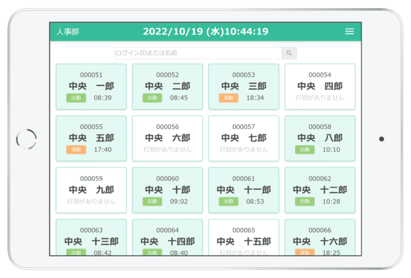 打刻はスタッフが名前をタップするだけと教育が不要な程シンプルです。